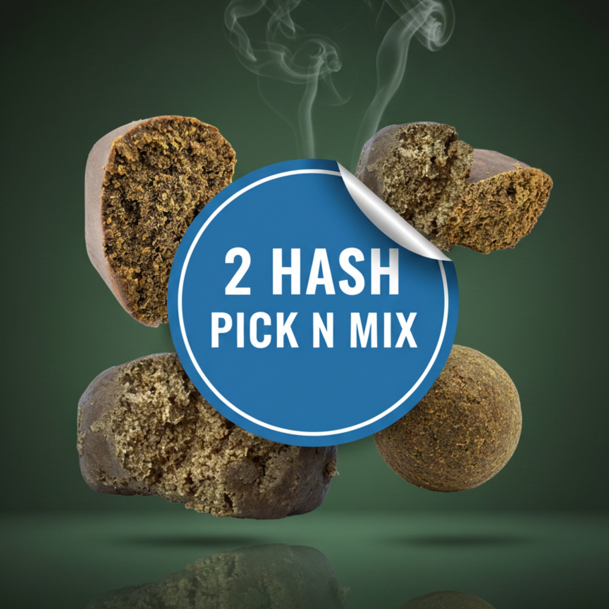 Enjoy premium quality and variety with the Calm Leaf 2 Flavour Hash Pick N Mix bundle. Choose two of your favourite CBD hash strains, each available in 4g, 5g or 7g sizes depending on quality — perfect for mixing up your sessions with different textures and flavours.
