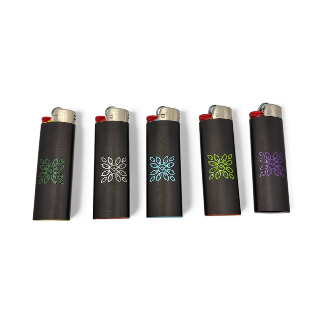 The Calm Leaf Bic Lighter with Logo combines functionality and vibrant design elements. This sleek lighter sports a classic black finish, providing a sophisticated backdrop for the striking green logo emblazoned on the side.